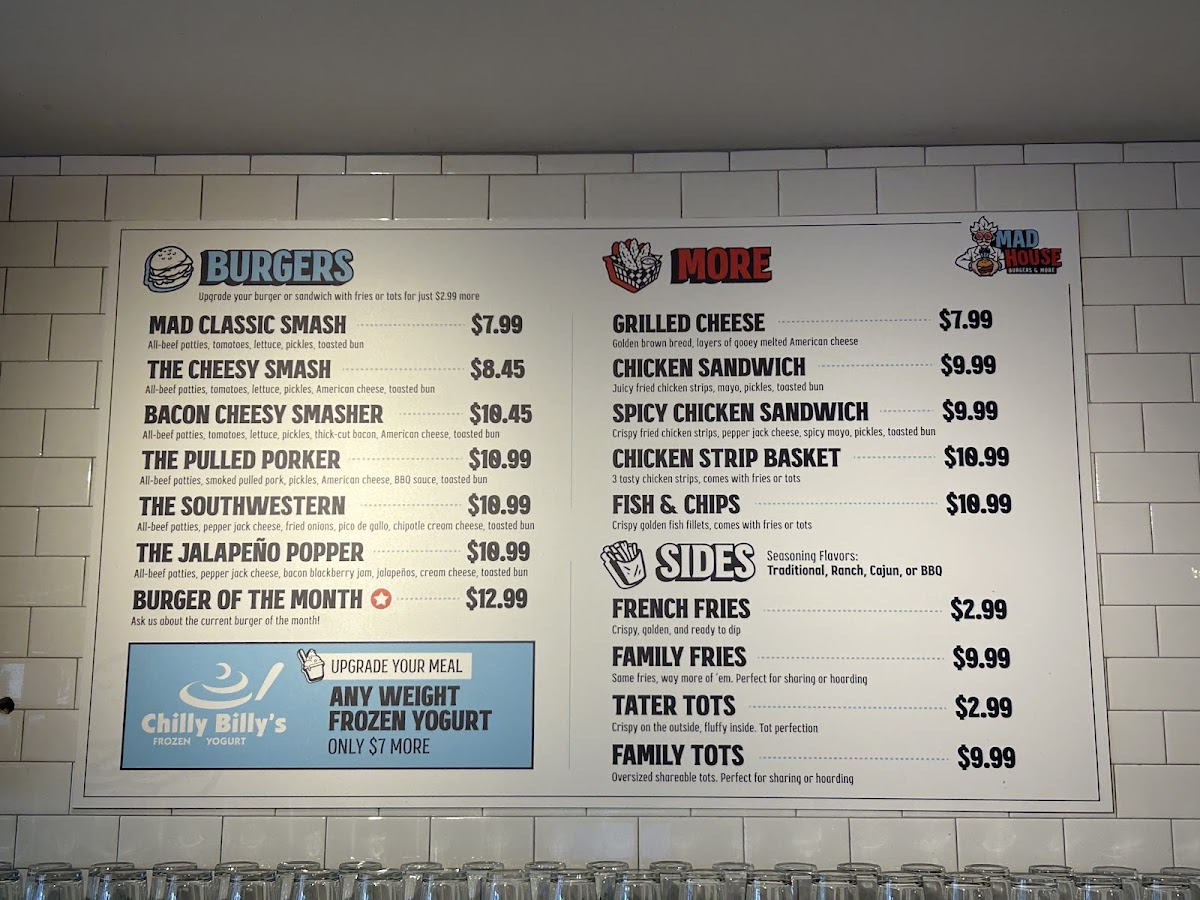Whether you're in the mood for a filling burger or just a quick bite, Madhouse Burgers offers something for everyone. The menu is well-rounded, with a good mix of options to satisfy a variety of cravings, making it a go-to spot for a satisfying meal in Duluth.